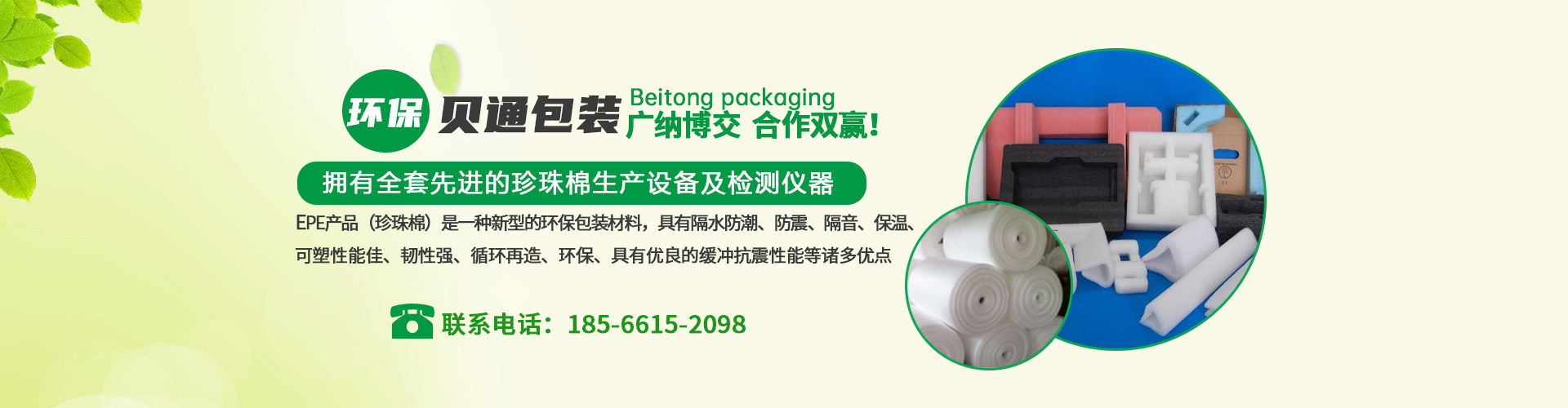 東莞市貝通包裝有限公司位于東莞市常平鎮(zhèn),交通便利。是一家集設(shè)計、生產(chǎn)、銷售、服務于一體的實體企業(yè),主要生產(chǎn)有:EPE珍珠棉,珍珠棉片材,貼合珍珠棉,珍珠棉異型材,成型珍珠棉等包裝產(chǎn)品。EPE產(chǎn)品(珍珠棉)是一種新型的環(huán)保包裝材料,具有隔水防潮、防震、隔音、保溫、可塑性能佳、韌性強、循環(huán)再造、環(huán)保、具有優(yōu)良的緩沖抗震性能等諸多優(yōu)點,亦具有很好的抗化學性能。是傳統(tǒng)包裝材料的理想代替品。公司生產(chǎn)的產(chǎn)品符合ROHS要求,廣泛應用于汽車、電子、玩具、五金、手袋、家具、電鍍、LED燈飾、玻璃制品、陶瓷、工藝品、醫(yī)療器材、凈水器、多媒體、家電、通訊設(shè)備等行業(yè)的各種形狀產(chǎn)品的包裝公司現(xiàn)有自己的設(shè)計團隊、品質(zhì)部、銷售團隊、運輸團隊、生產(chǎn)管理團隊,擁有全套先進的珍珠棉生產(chǎn)設(shè)備及檢測儀器,配合科學的管理,為產(chǎn)品質(zhì)量提供強有力的保證,公司始終秉承“顧客至上,品質(zhì)優(yōu)良,信譽為本”的經(jīng)營宗旨!竭誠為廣大客戶朋友們服務!